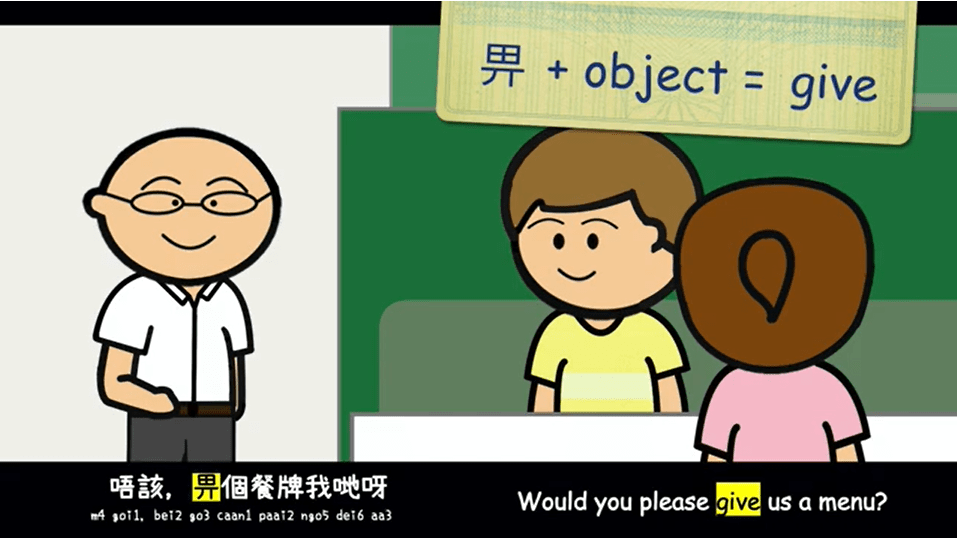 Pratiquez votre compréhension en regardant de courtes scènes animées ponctuées de courtes explications grammaticales en contexte. Les vidéos sont sous-titrées en jyutping, en anglais et en chinois.