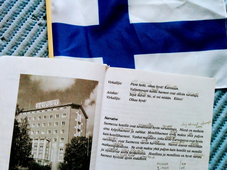 Mon matériel d’apprentissage consistait alors en un livre-cassette que je m’étais procuré tant bien que mal dans une librairie spécialisée de Montréal, le CD du groupe finlandais CMX, et des bande-dessinées achetées là-bas.