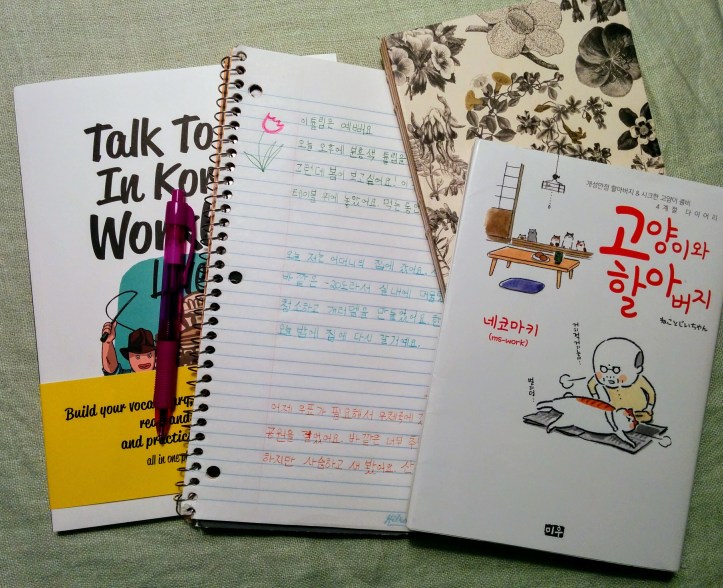 S’en est suivi alors l’achat de nombreux livres et podcasts, l’écoute de plusieurs séries et une étude assidue de la langue. Pourtant, malgré tous les efforts et les leçons avec une tutrice en ligne, je n’arrivais pas à former mes propres phrases, et la mémorisation du vocabulaire, qui ne m’avait jamais causé problème dans les autres langues, était plutôt difficile. Autour de moi, plusieurs personnes qui étudiaient depuis moins longtemps semblaient progresser plus rapidement. J’ai compris qu’il faudrait sans doute étudier plus sérieusement et me joindre à une école où le programme serait plus structuré, mais mon intérêt à ce moment était déjà en déclin.